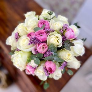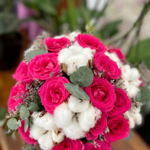 זר הזה מכיל את השילוב העדין ביותר של ליזיאנטוס לבן, גיפסנית ובולי כותנה.