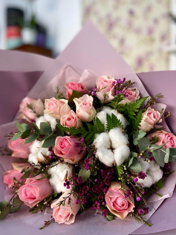 זר עדין הזה של חרציות לבנות וורודות. הפרח הזה יפה וחזק. זר ישמח אותכם לאורן זמן.