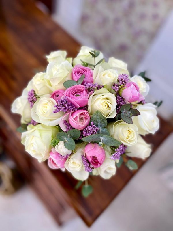 שילוב עדין מאוד של נוריות בהירות וורדים לבנים.