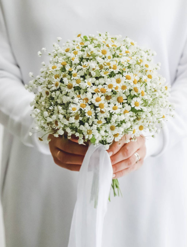 זר של קמומיל עדין מאוד. זה ייתן אפילו יותר רוך לדימוי של הכלה.