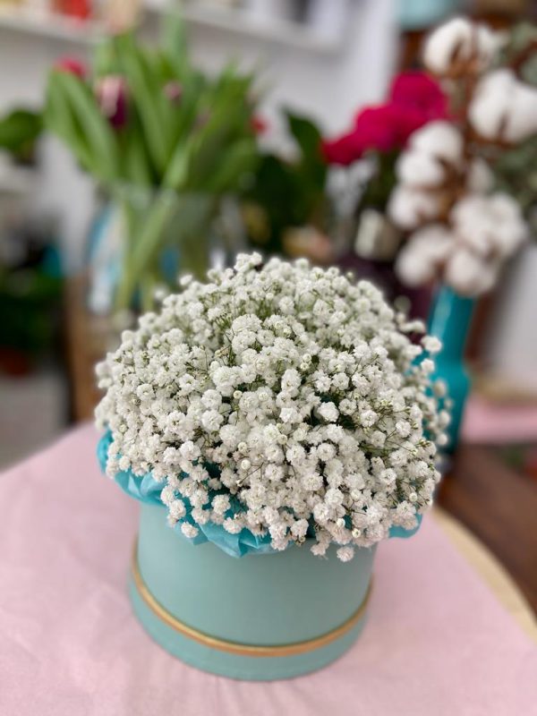 Box with gypsophila clouds